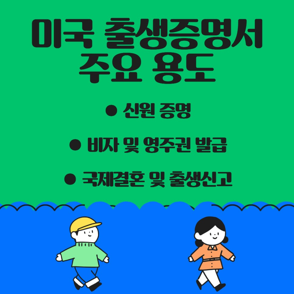 먼저, 미국 출생증명서는 주로 다음과 같은 국제 행정 및 법적 절차에서 요구됩니다.