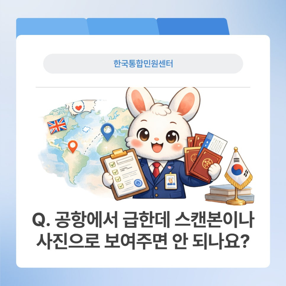 공항에서 급한데 스캔본이나 사진으로 보여주면 안 되나요?