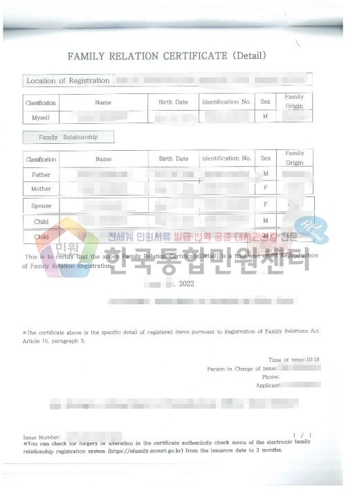 가족관계증명서, 기본증명서, 혼인관계증명서, 입양관계증명서, 출생증명서, 이혼판결문, 주민등록등·초본,,,