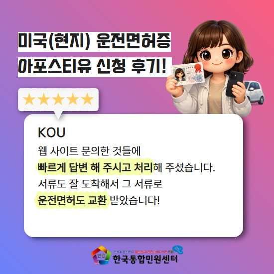 그래서 저희 한국통합민원센터에서는 미국(현지) 운전면허증 아포스티유를