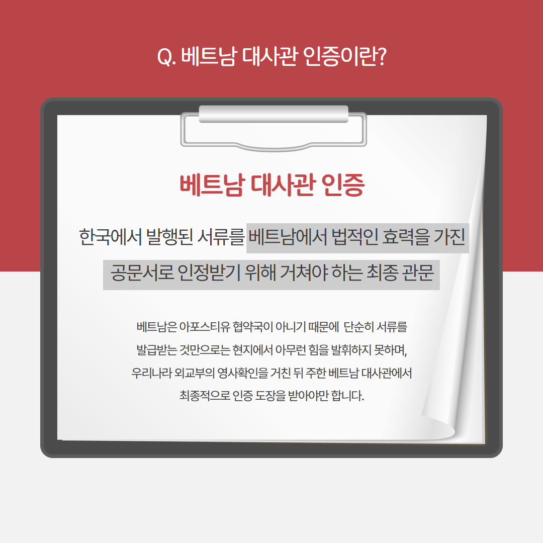 특히 베트남은 서류 심사가 까다로운 국가 중 하나로 꼽히기 때문에, 국가가 직접 문서의 진정성을 보증하여