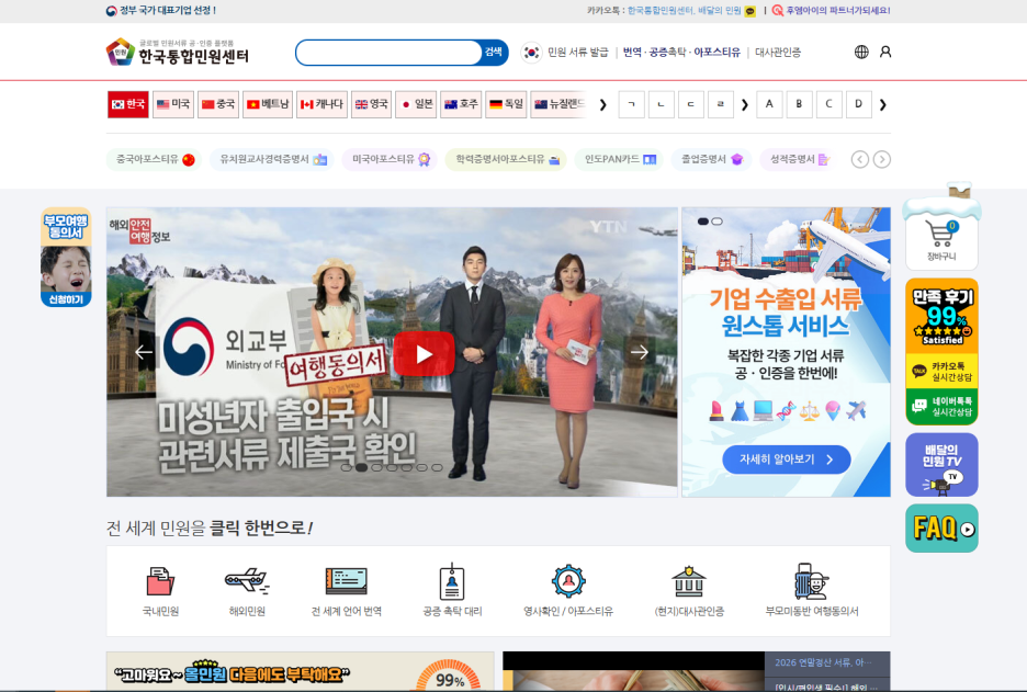 민원서류 발급, 번역, 공증촉탁대리, 외교부 아포스티유, 영사확인, 대사관인증, 해외배송까지 원스톱, 전세계 글로벌 민원 토탈 원스톱 서비스