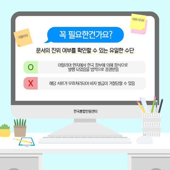 한국에서 정성껏 준비한 서류들이 머나먼 이탈리아 땅에서도 그 효력을 정당하게 인정받기 위해서는