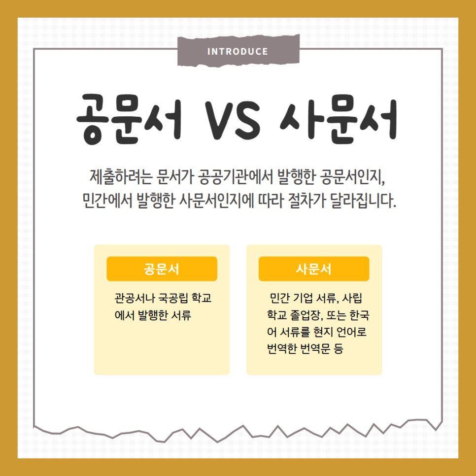 서류의 성격이 공문서인지 사문서인지에 따라 절차가 달라지기 때문인데요!