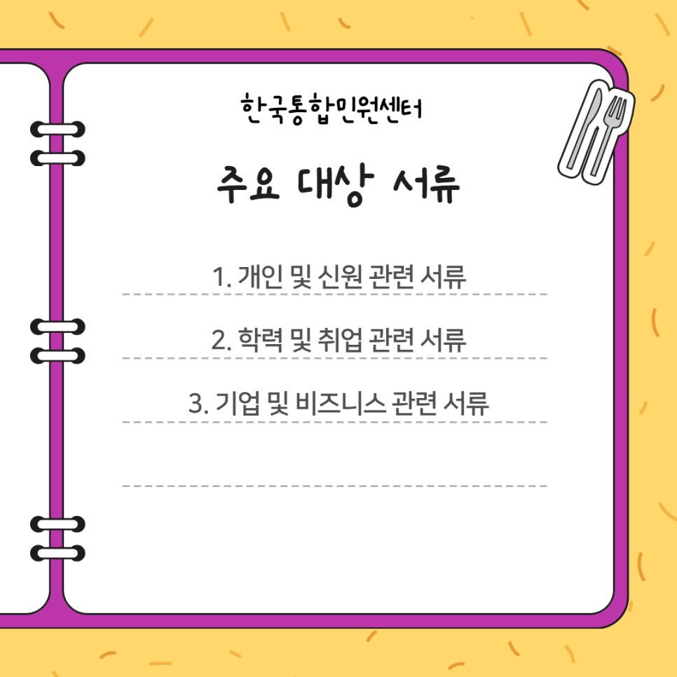 한국통합민원센터에서 전문가들의 도움을 받아 간편하고, 정확하게 서류를 준비해보세요!!
