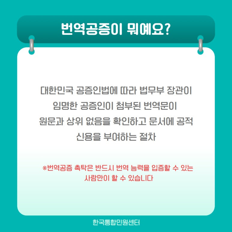 ※번역공증 촉탁은 반드시 번역 능력을 입증할 수 있는 사람만이 할 수 있습니다.