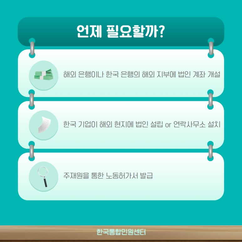 2. 해외 은행이나 한국 은행의 해외 지부에 법인 계좌를 개설할 때