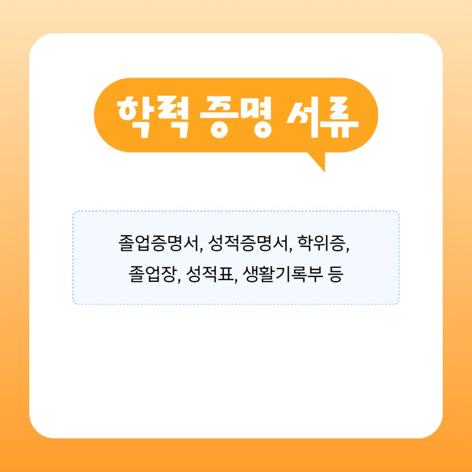 학력 관련 서류에는 졸업증명서, 성적증명서, 학위증, 졸업장, 성적표,