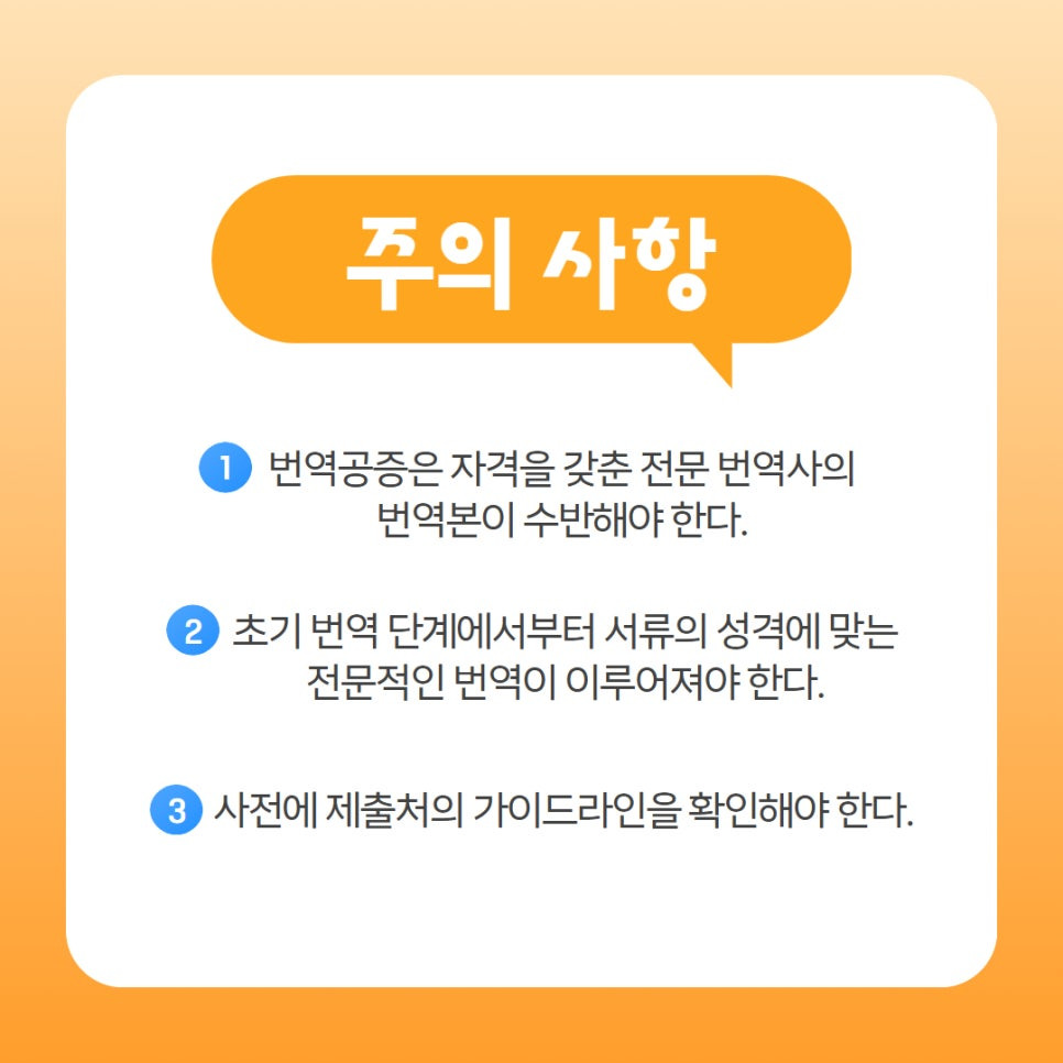 이때 개인이 임의로 번역한 서류는 조작의 위험이 있어 공신력을 인정받기 어렵습니다.
