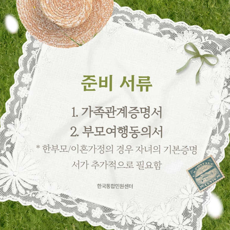 한부모/이혼가정의 경우 자녀의 기본증명서를 추가적으로 준비하여