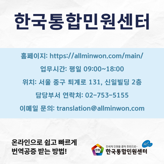 전문적인 노하우를 가진 한국통합민원센터를 통해 쉽고 빠르게 해결해 보시길 권해드립니다.