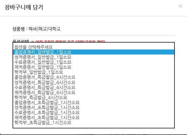 원하시는 상품종류, 기간 중 어떤 것이 필요하신지 확인 하여 옵션을 선택해주시면 됩니다.