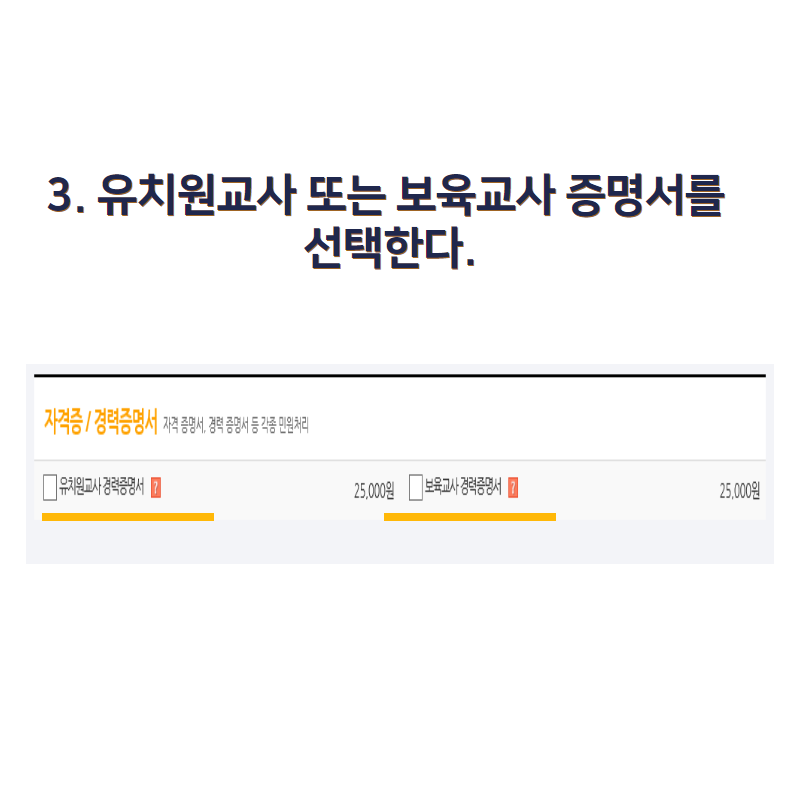 국내 민원신청을 클릭 후 자격증 / 경력증명서를 클릭합니다.
