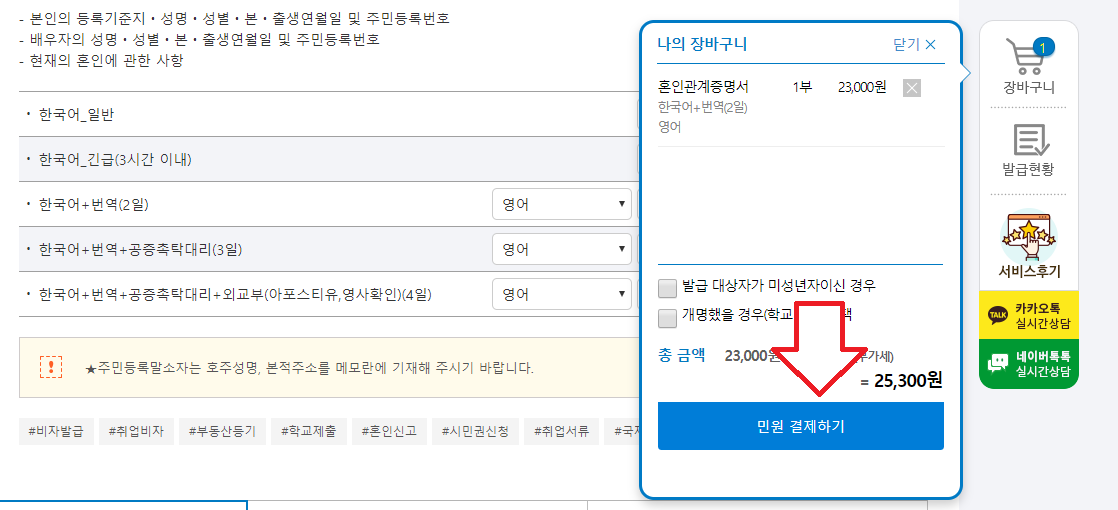 STEP 4. [민원 결제하기]를 누르면 완료!