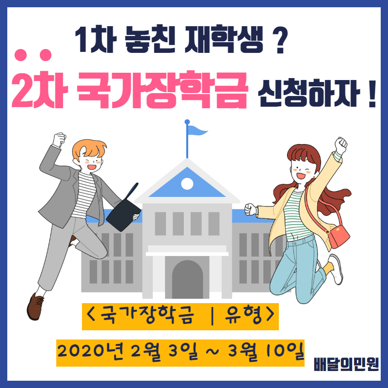 국가장학금 2차 신청기간이 2월 3일부로 시작되었습니다~~