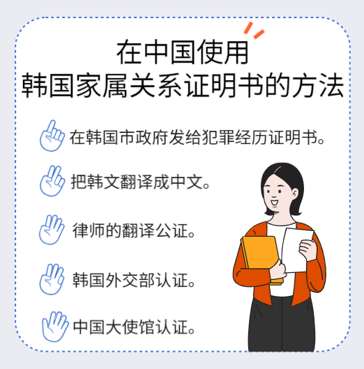 所以为了在中国使用韩国家属关系证明书,需要经过五个阶段。