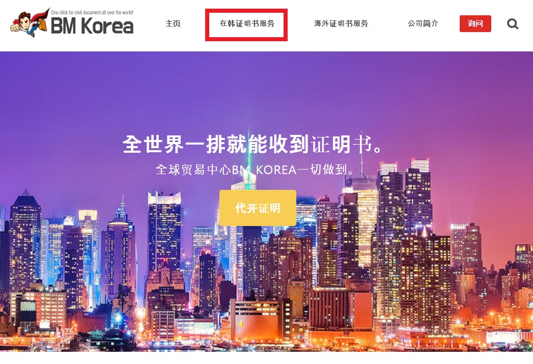 BMKorea提供发给,翻译,代理公证,大使馆认证,外交部认证等服务。