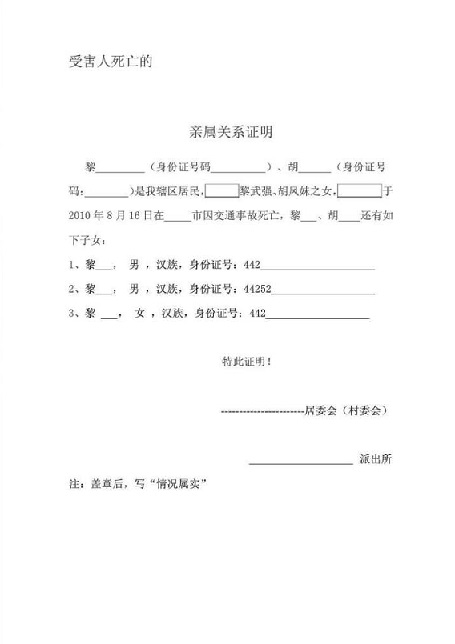 家属关系证明书因签证等理由使用。
