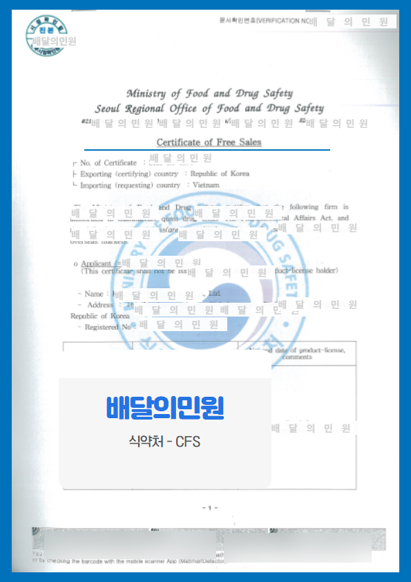 자유판매증명서는 CFS, Certificate of Free Sale는 상품을