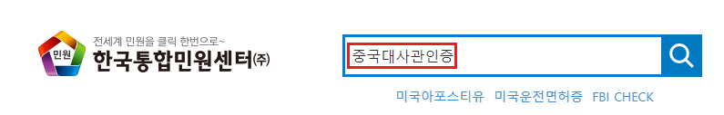 2. 검색창에 중국 대사관 인증이라고 검색한다.