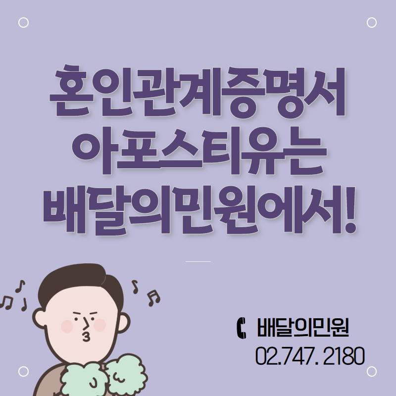저희 배달의민원에도 혼인관계증명서 아포스티유 인증으로 찾아오시는 분들도 계시답니다!