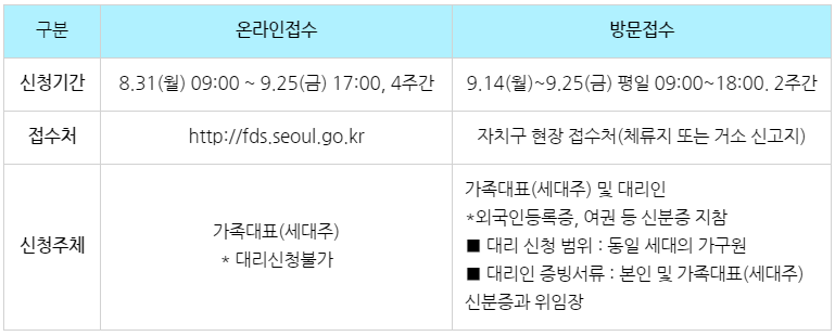 2. 가족대표(세대주)가 기준일 현재(8월27일) 서울시에 외국인 등록을 신고한 지 90일을
