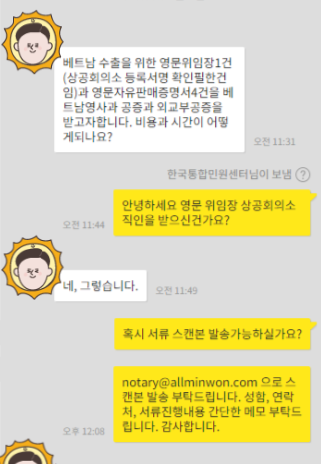 이후 사실공증 및 외교부인증, 베트남 대사관인증 관련해서 견적을 바로 보내드립니다 :)